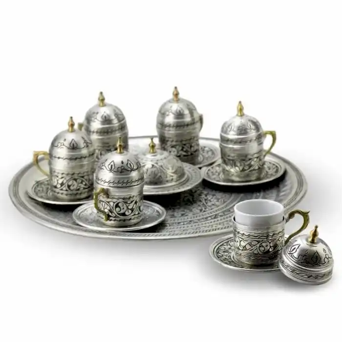 Turkish Copper Coffee Set Handcrafted – Padişah (Set of 6) – Turkish Craft