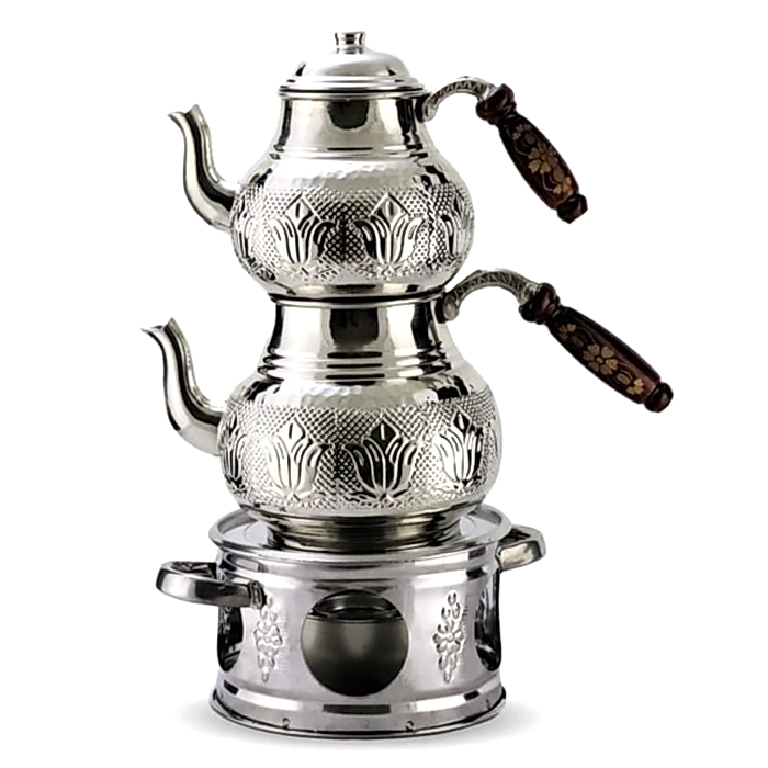 Turkish Copper Teapot and Chrome Ottoman Stove